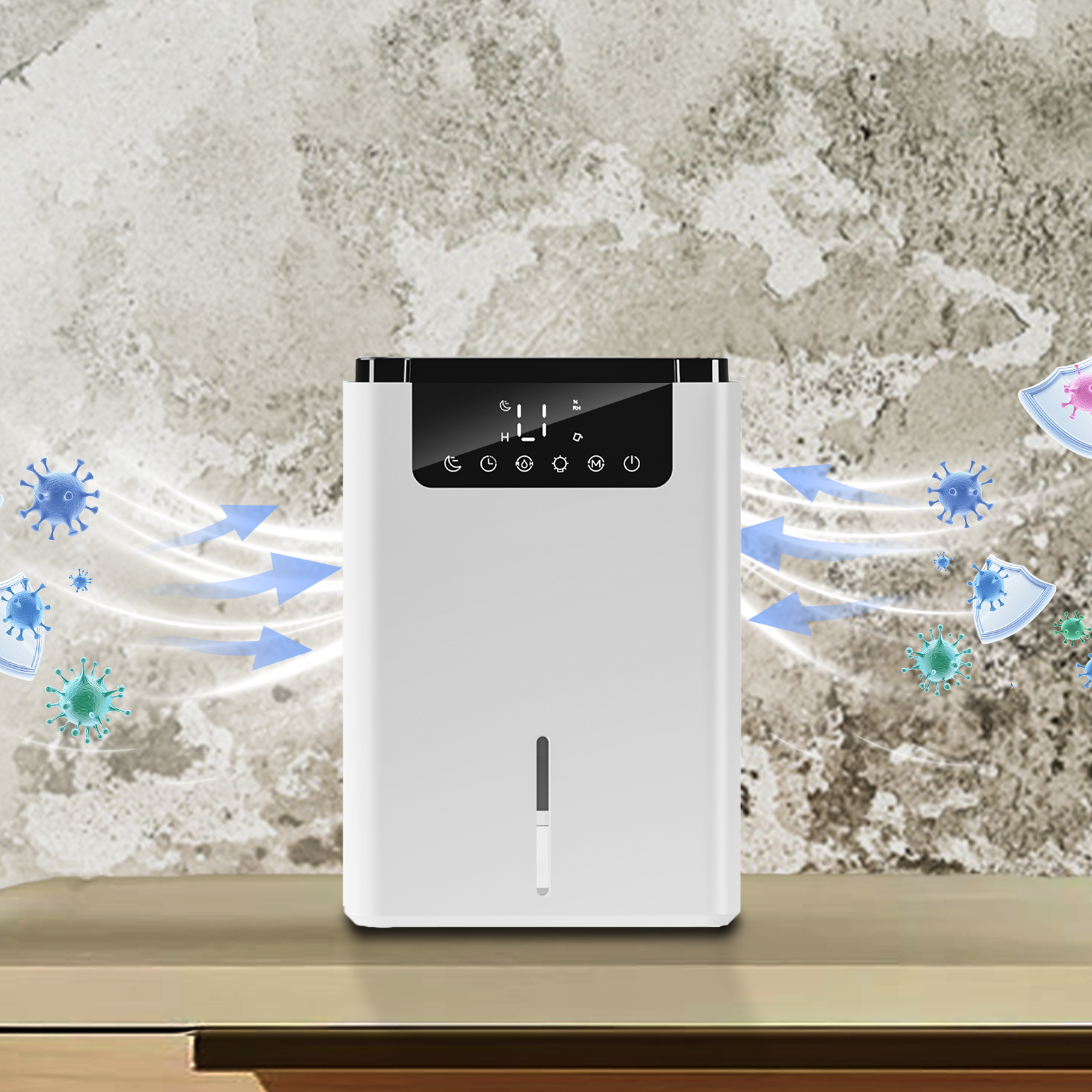 Marvics' powerful sterilization technology actively eliminates up to 99.9% of airborne bacteria, viruses, and mold spores—keeping your air cleaner, purer, and free from odors and invisible threats. It also effectively prevents mold growth on surfaces and fabrics, safeguarding your belongings while reducing allergens for a healthier environment.