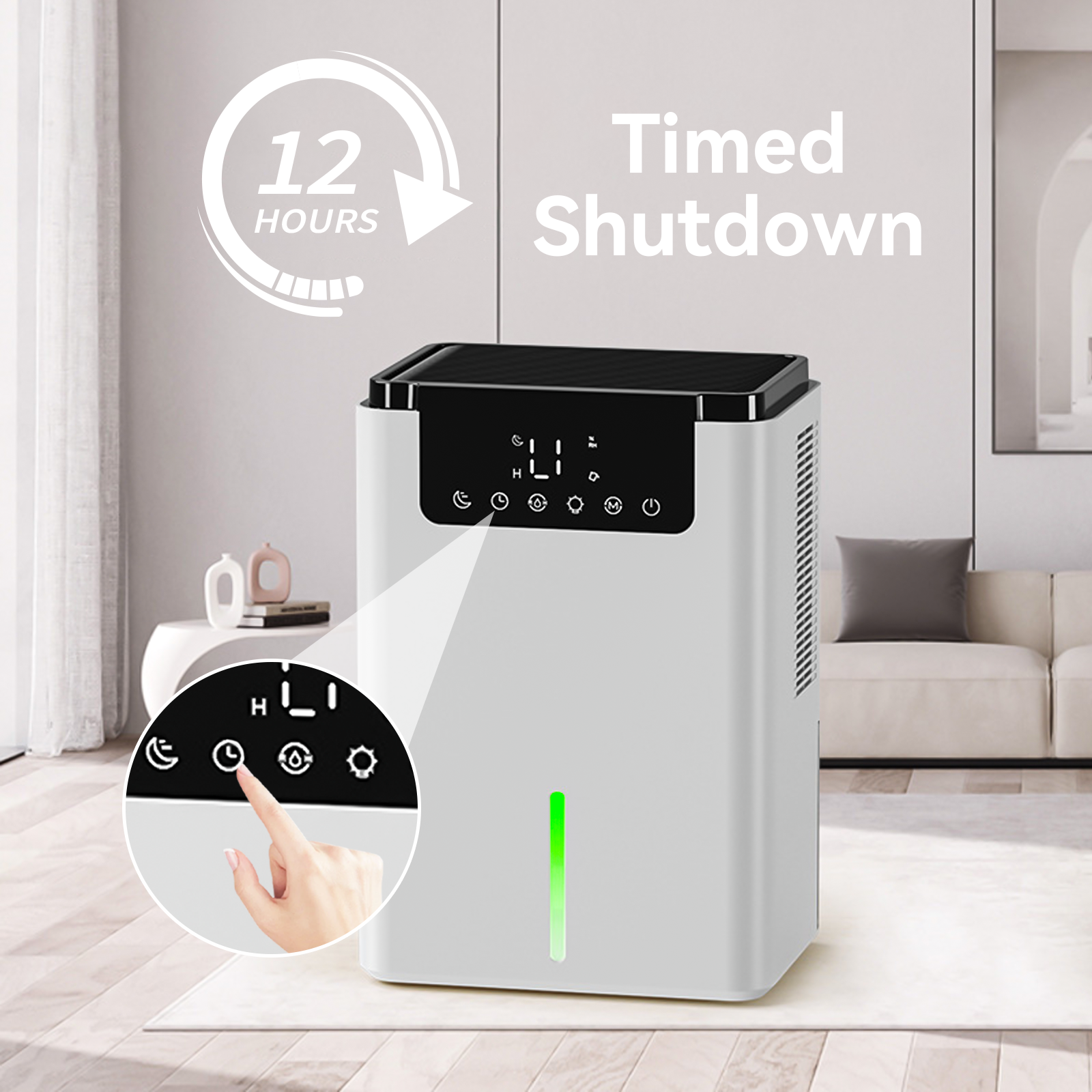 • Intuitive LED Touch Screen: Displays real-time humidity with simple touch controls for the whole family.