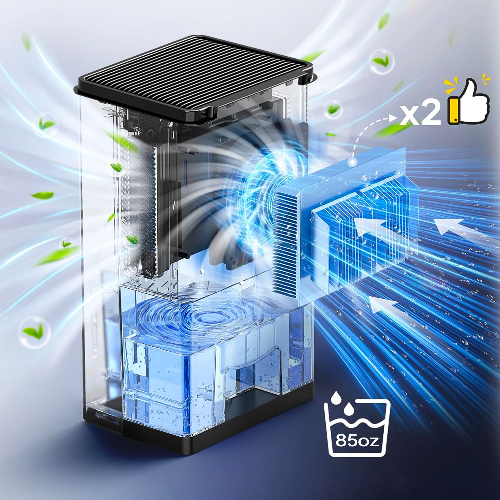 • Powerful Dehumidification: Dual-core technology quickly clears stuffiness for fresher air.